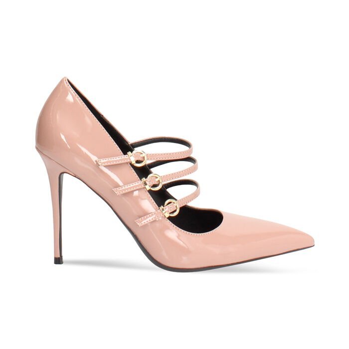 Salón nude en charol con tacón de 10 cm, diseñado para aportar elegancia atemporal y máxima versatilidad. El acabado brillante realza el diseño y alarga visualmente la pierna, convirtiéndolo en un básico imprescindible para cualquier armario femenino.